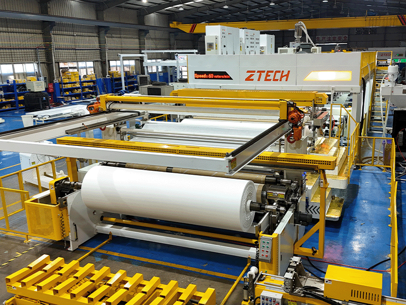 - Интеллектуальное управление процессами: использует систему управления на базе ПЛК и сенсорный экран HMI для мониторинга и регулировки в реальном времени температуры экструзии, давления ламинирования, скорости и других параметров, обеспечивая точный контроль над производственным процессом.
